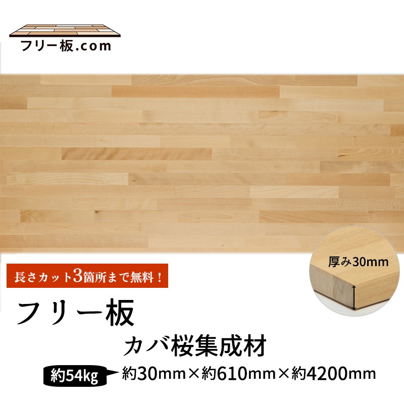 | 商品名 | カバ桜集成材 フリー板 厚み30mm巾610mm長さ4200mm |