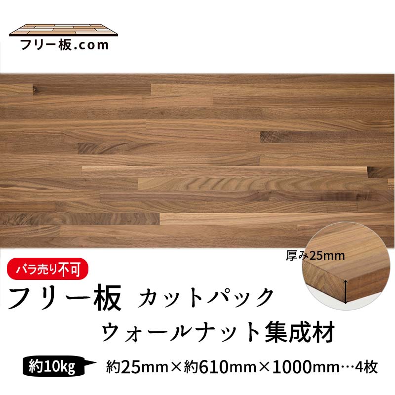 | 商品名 | ウォールナット集成材 カットパック 厚み25mm巾610mm長さ1000mm×4枚 |