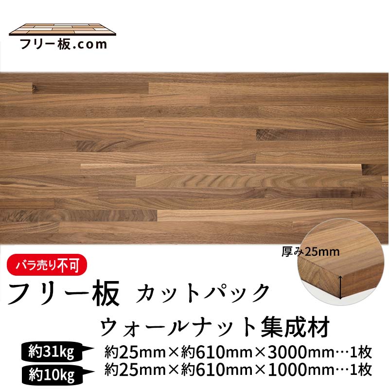 ウォールナット集成材 カットパック 厚み25mm巾610mm長さ3000mm×1枚 1000mm×1枚
