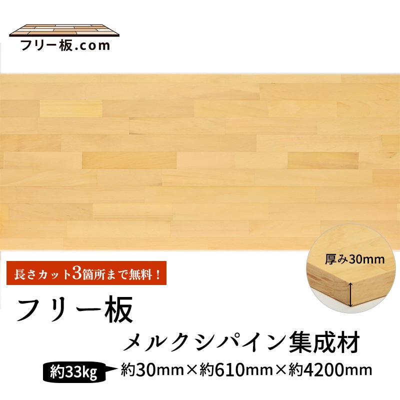 | 商品名 | メルクシパイン集成材 フリー板 厚み30mm巾610mm長さ4200mm |